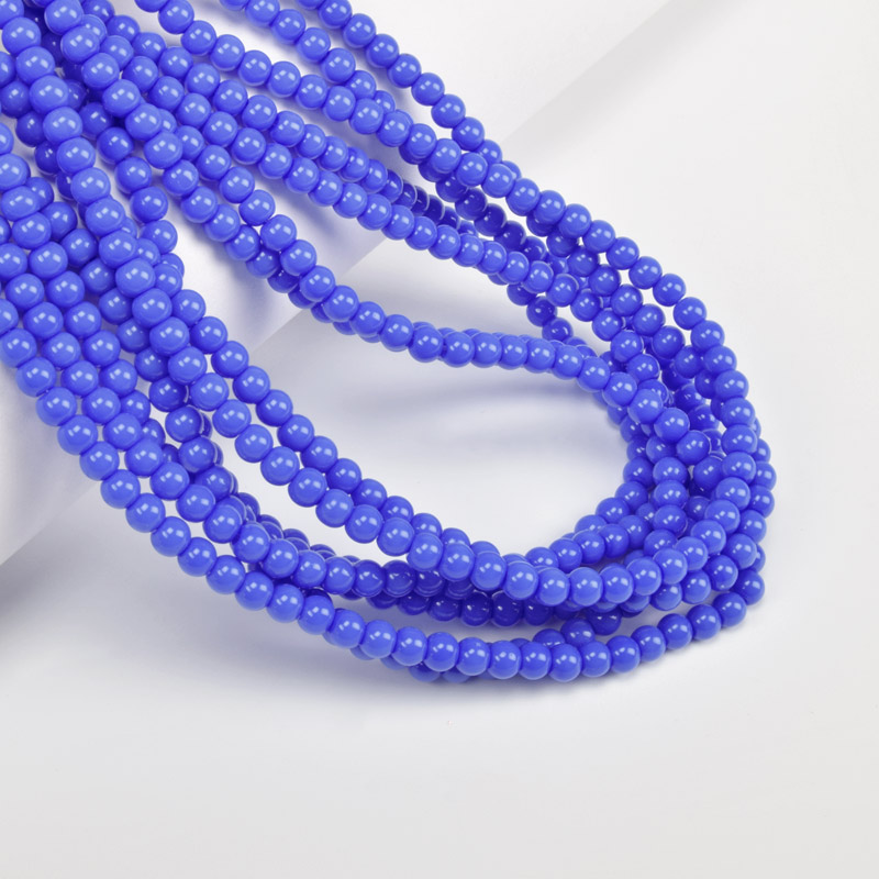 Намистини скляні, 4,5 мм, Круглі, Сині (BUS-060960) / 1 низка