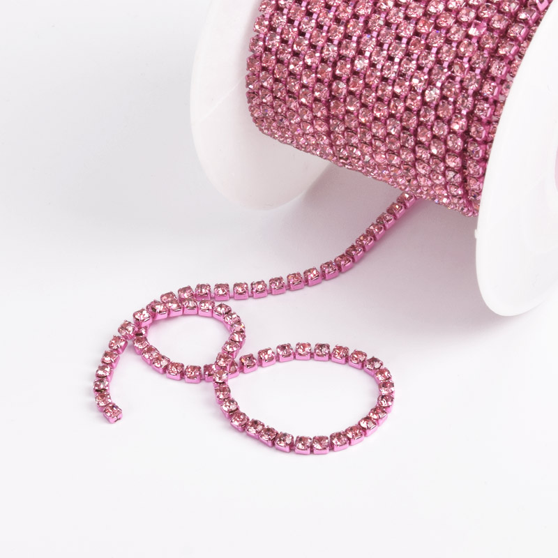 Стразовий ланцюг SS6 - 2,0 мм, Рожевий, Стрази скляні рожеві (ZEP-061029) / 1 м