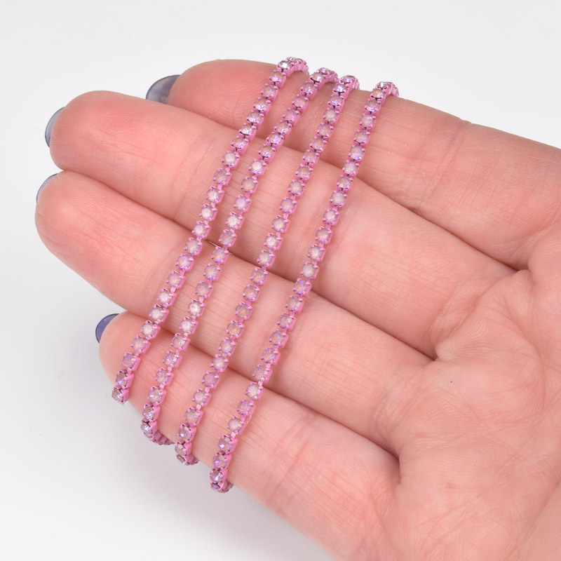 Стразовий ланцюг SS6 - 2,0 мм, Рожевий, Стрази скляні рожеві опал (ZEP-061035) / 1 м