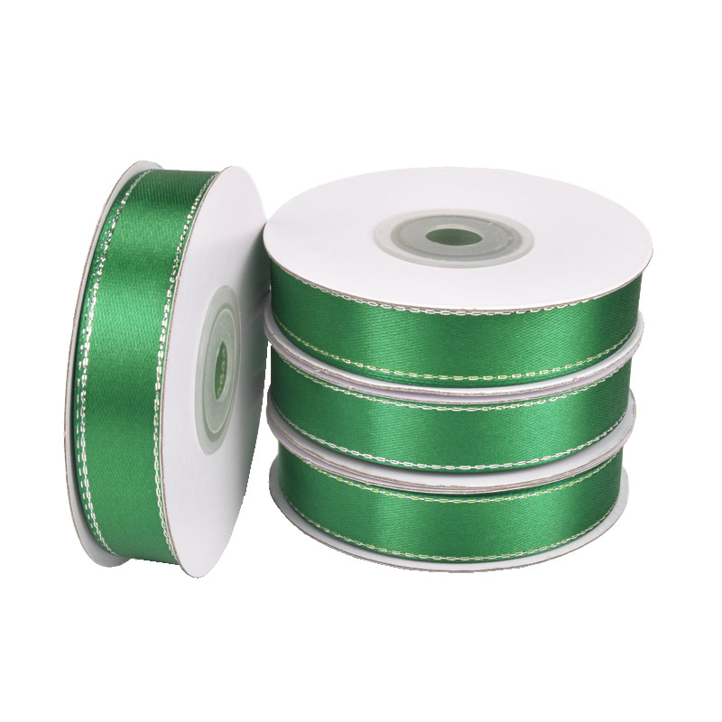 Атласна стрічка з люрексом, 15 мм, Зелена зі сріблом (LEN-061081) / 1 моток (22 м)