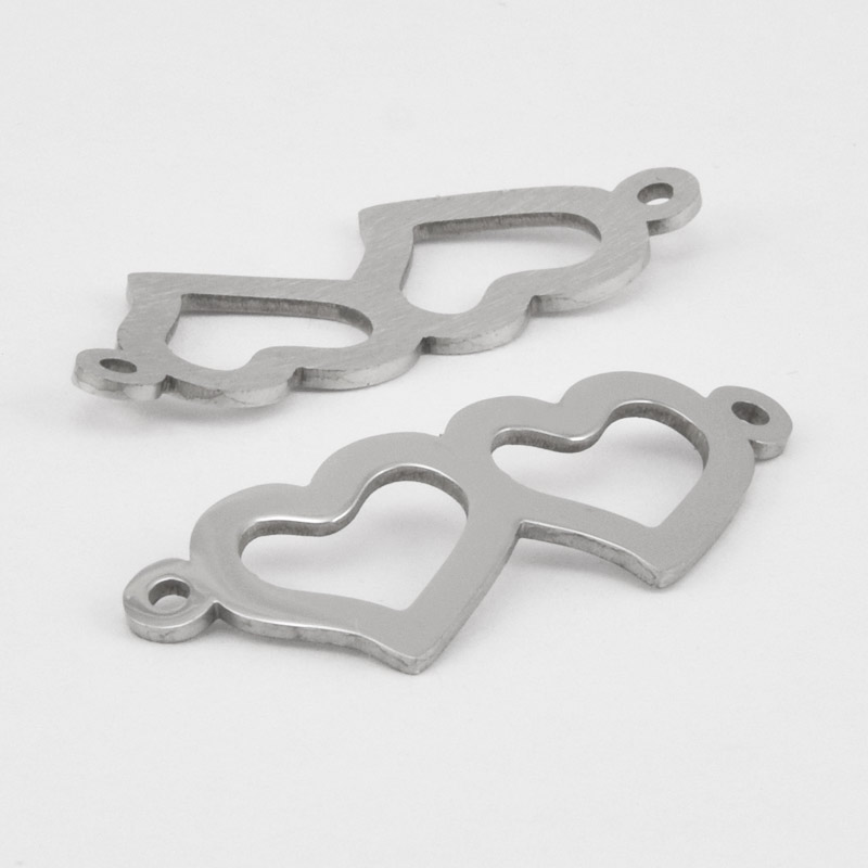 Конектор з нерж. сталі Серця, 32х12 мм, Темне срібло (STL-061418) / 1 шт