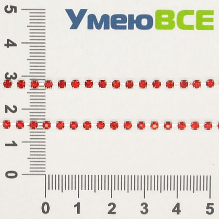 Стразовий ланцюг SS8 (2,4 мм), Світле срібло, Стрази скляні червоні (ZEP-007764) / 1 м