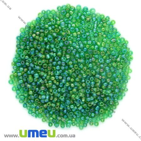 Бісер китайський середній, 8/0, Зелений АВ прозорий, 3 мм (BIS-007975) / 1 уп (25 г)