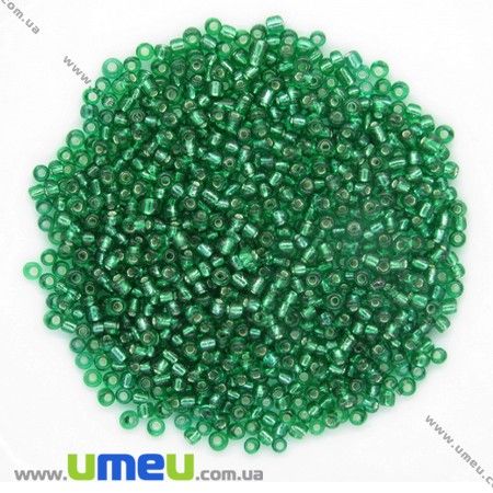 Бісер китайський середній, 8/0, Зелений блискучий, 3 мм (BIS-007977) / 1 уп (25 г)