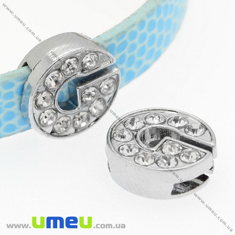 Намистина мет., Буква G зі стразами, 12х11 мм, Темне срібло (BUS-008848) / 1 шт