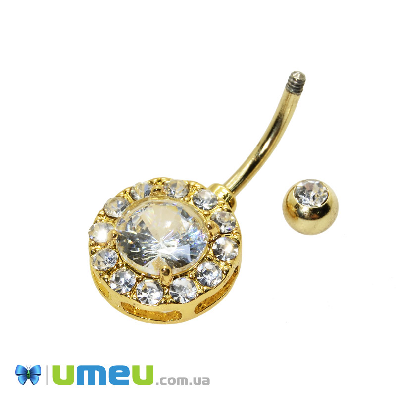 Серьга для пирсинга пупка из нерж. стали, Золото, 29х13 мм, Белая (OSN-048050)