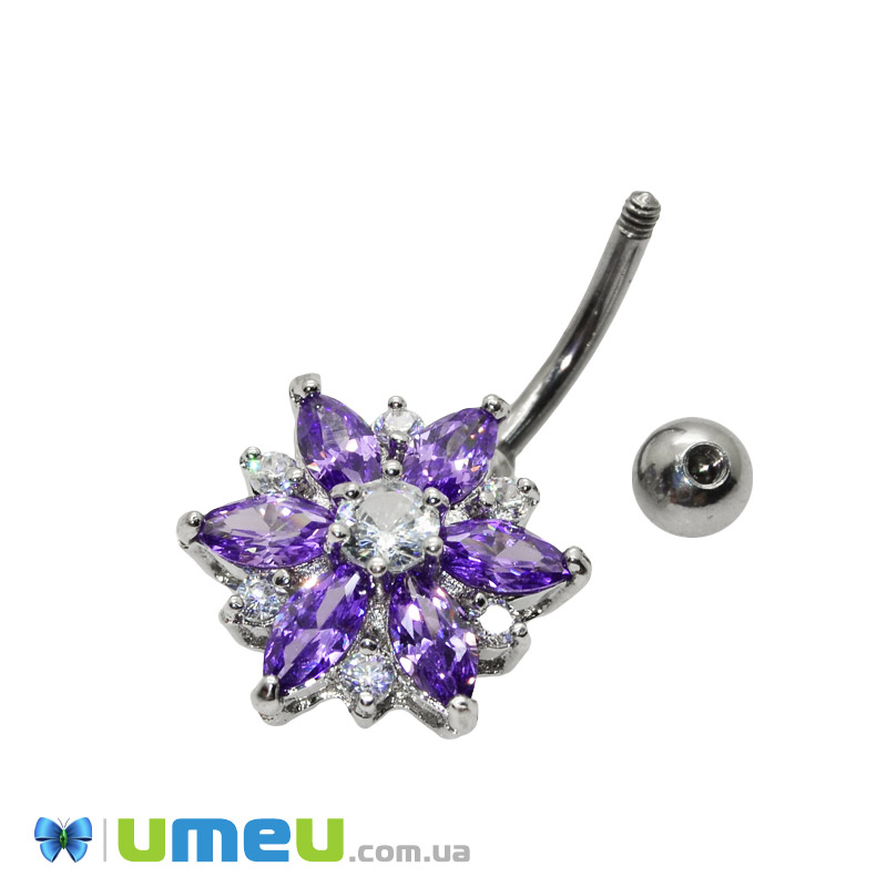 Нержавеющая сталь 316L гипоаллергенна, устойчива к воздействию мор...Серьга для пирсинга из нерж. стали с кубическим цирконием, 29х15 мм, Сиреневая (OSN-048051) / 1 штOSN-048051179.00₴107.40₴ / шт -