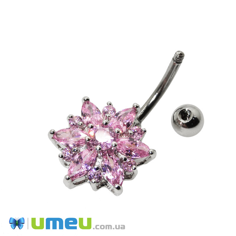 Нержавеющая сталь 316L гипоаллергенна, устойчива к воздейств...Серьга для пирсинга пупка из нерж. стали, Темное серебро, 29х13 мм, Розовая (OSN-048046) / 1 штOSN-048046148.00₴88.80₴ / шт -