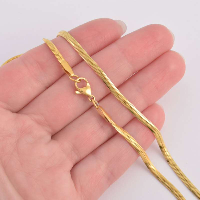 Основа на шею из нерж. ст., Плетение Снейк 3 мм, Длина 45 см, Золото (STL-058326)