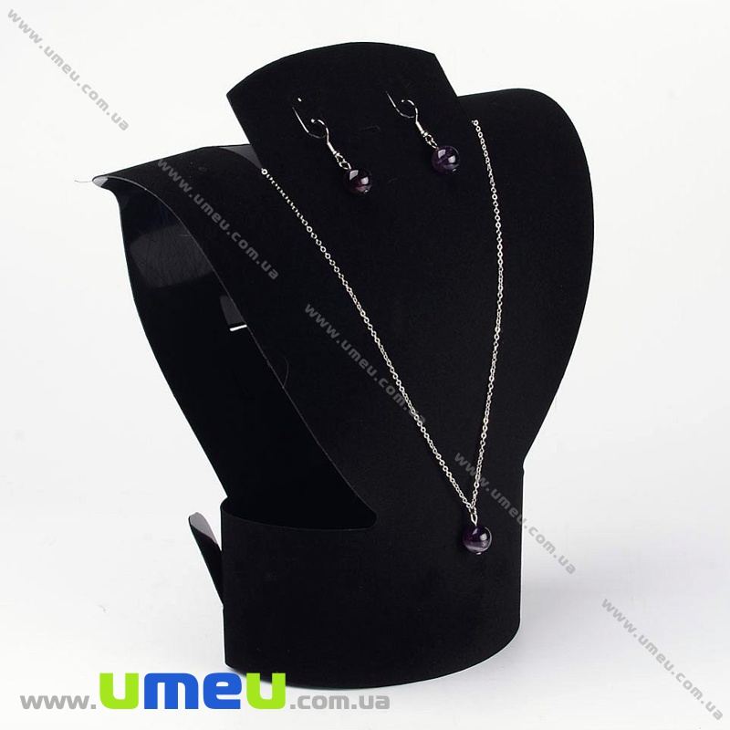 Подставка под колье пластиковая бархатная Шея, 22х21 см, Черная (UPK-035038)
