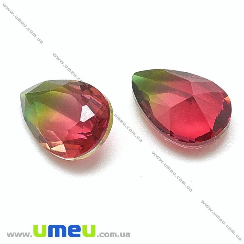 Риволи стеклянный, Капля граненая двухцветная, 14х10 мм, Изумрудно-бордовый (KAB-031395)