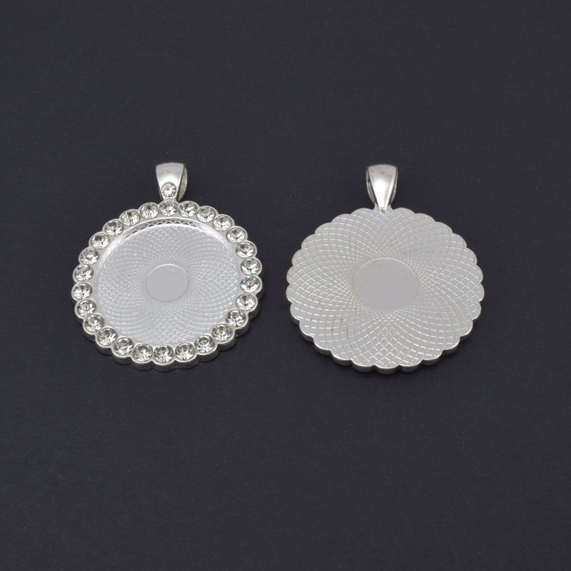 Основа круглая со стразами, 43х34 мм, 25 мм, Светлое серебро (OSN-059439)