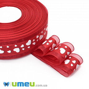 Лента из органзы Сердца, 25 мм, Красная (LEN-048570)