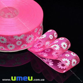 Лента из органзы Ромашки, 25 мм, Малиновая (LEN-019689) / 1 мLEN-019689 Кратно 0.5 едДанный товар можно приобрести