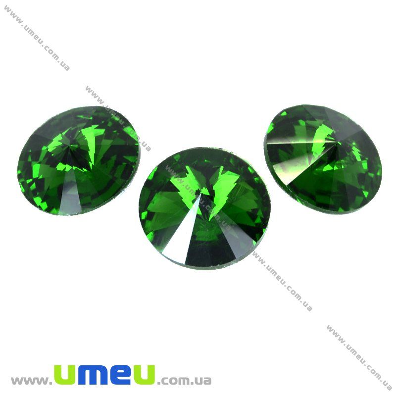 Риволи стеклянный, Круглый граненый, 14 мм, Зеленый (KAB-010093) / 1 шт