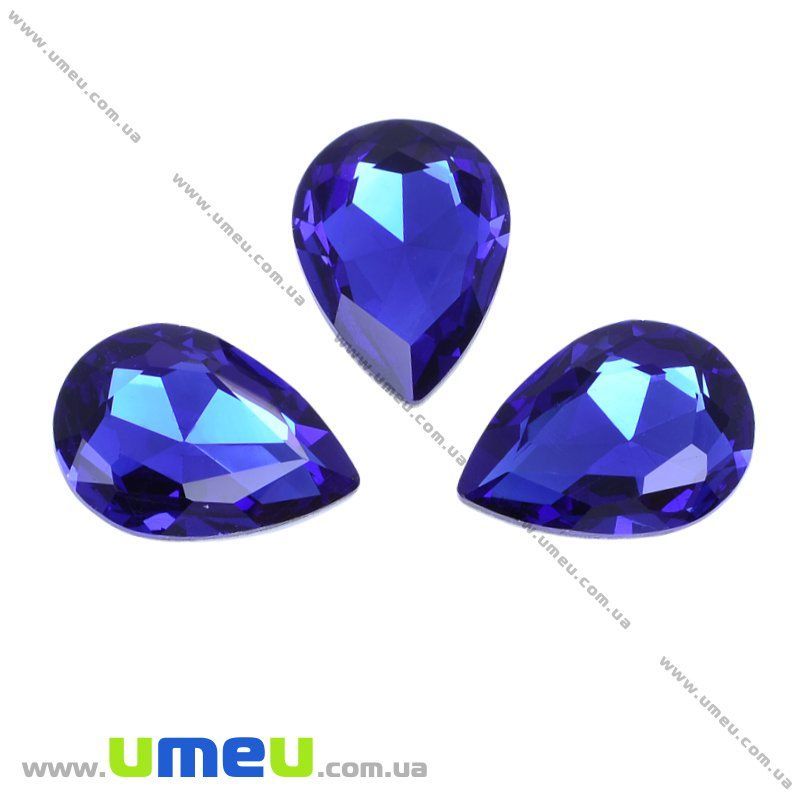 Риволи стеклянный, Капля граненая, 25х18 мм, Синий (KAB-010545) / 1 шт