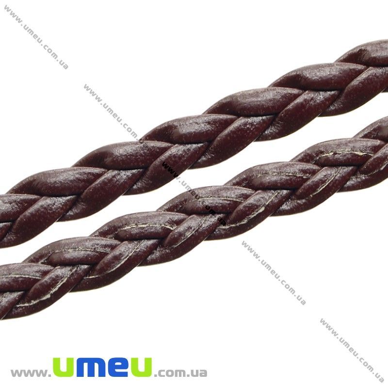 Плетенный искусственный кожаный шнур (косичка), Коричневый, 5 мм (LEN-011670) / 1 м