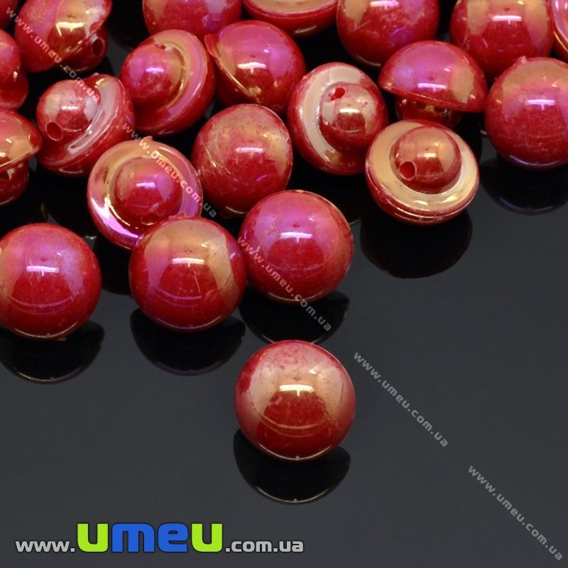 Пуговица пластиковая на ножке Круглая перламутровая, 10 мм, Красная АВ (PUG-012849) /