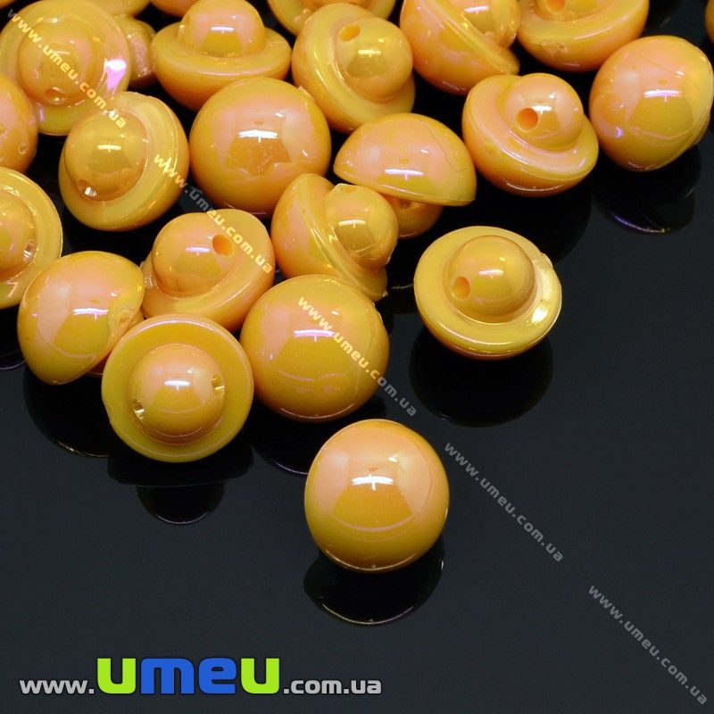 Пуговица пластиковая на ножке Круглая перламутровая, 10 мм, Оранжевая АВ (PUG-012850) /