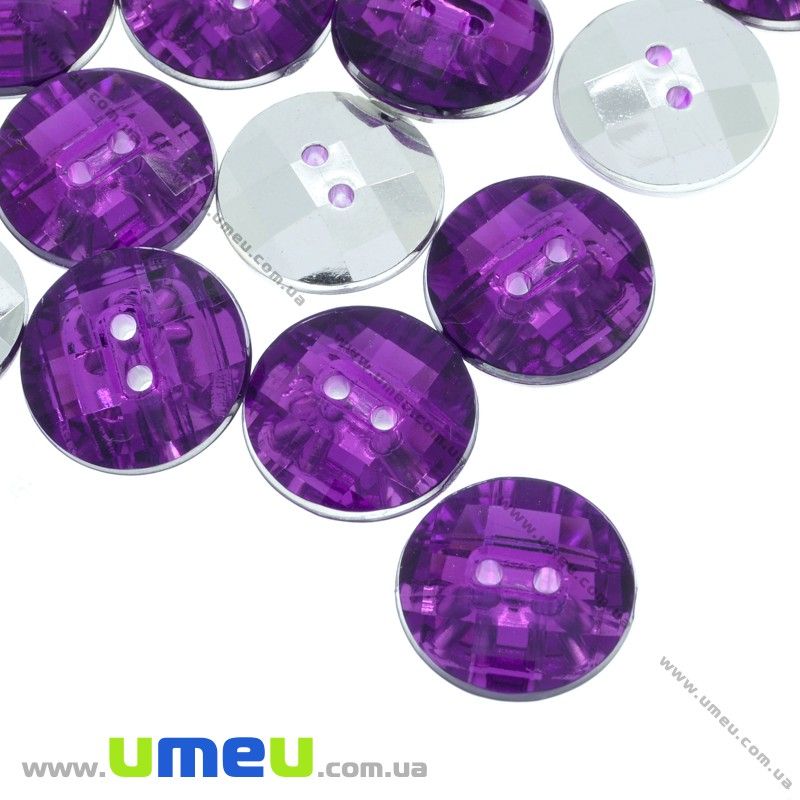 Пуговица пластиковая Круглая граненая, 13 мм, Фиолетовая (PUG-012870) /