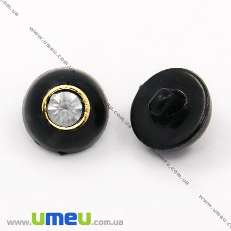 Пуговица пластиковая на ножке Круглая со стразом, 13 мм, Черная (PUG-012890) /