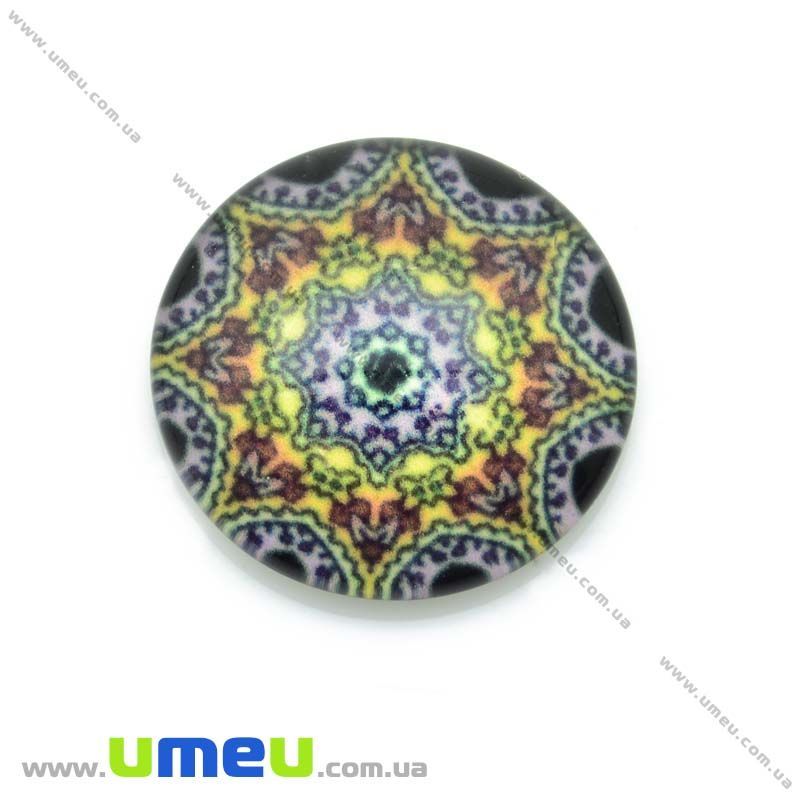 Кабошон стекл. с принтом Узор, 18 мм, Круглый (KAB-013634) /