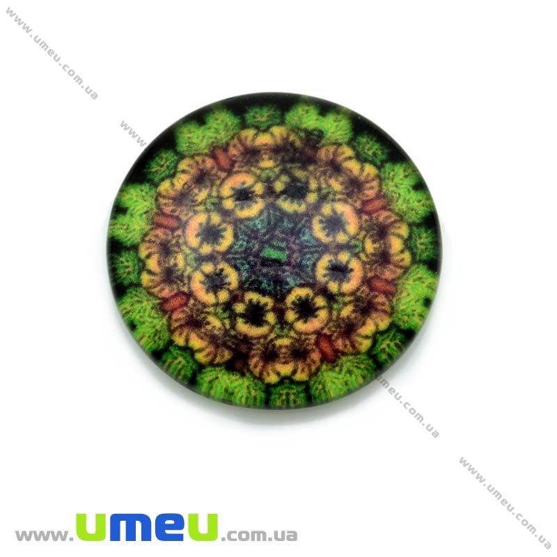 Кабошон стекл. с принтом Узор, 18 мм, Круглый (KAB-013637) /