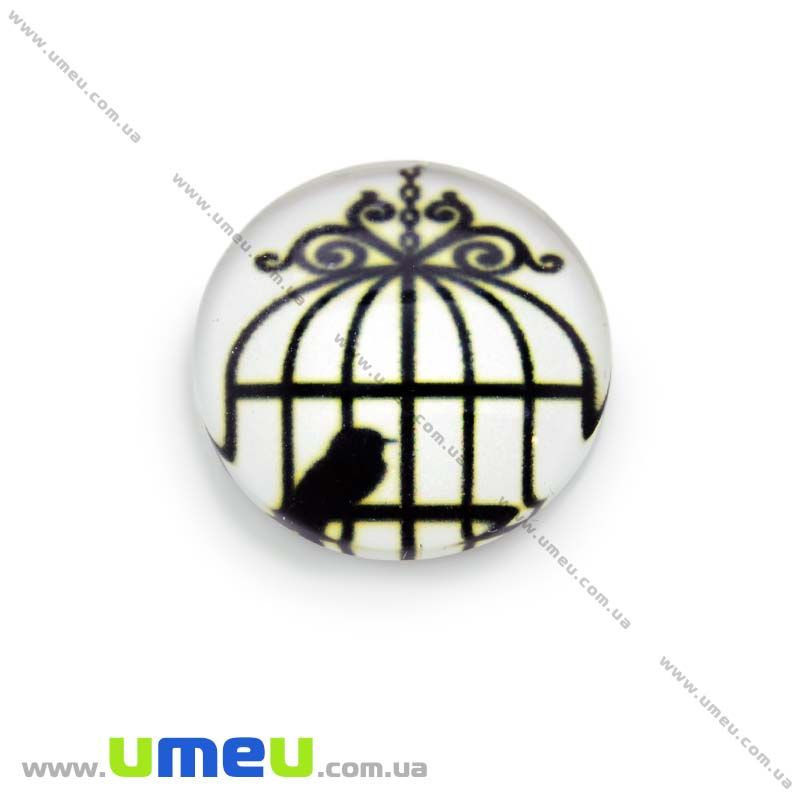 Кабошон стекл. с принтом Клетка, 18 мм, Круглый (KAB-013666) / 1 шт