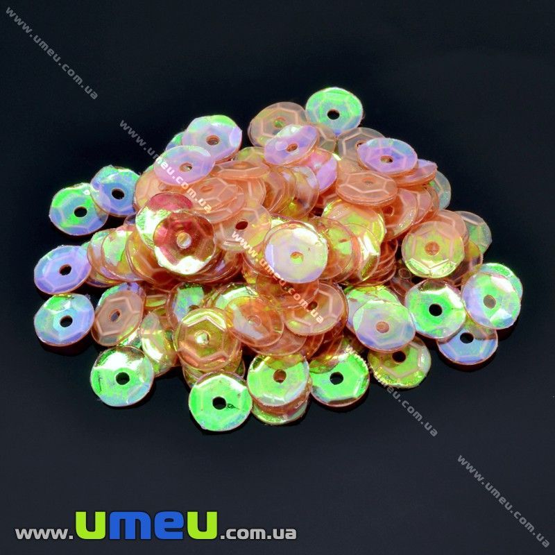 Пайетки Китай круглые граненые, 6,5 мм, Оранжевые AB (PAI-001520) / 1 уп (5 г)