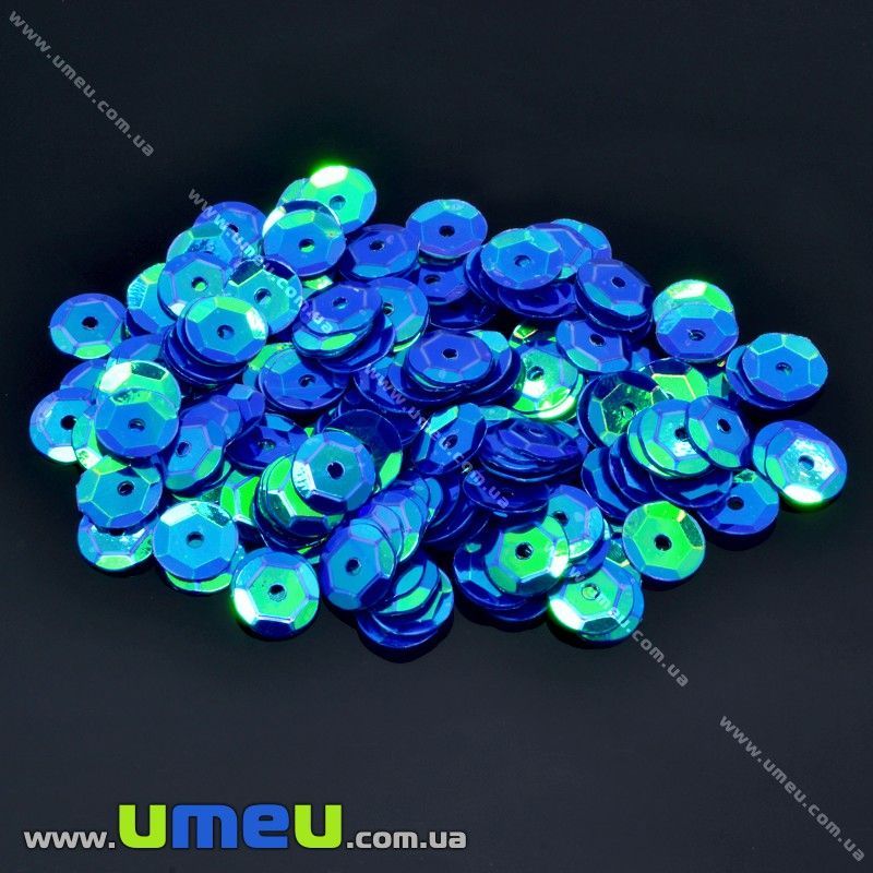 Пайетки Китай круглые граненые, 6,5 мм, Синие АВ (PAI-001523) / 1 уп (5 г)