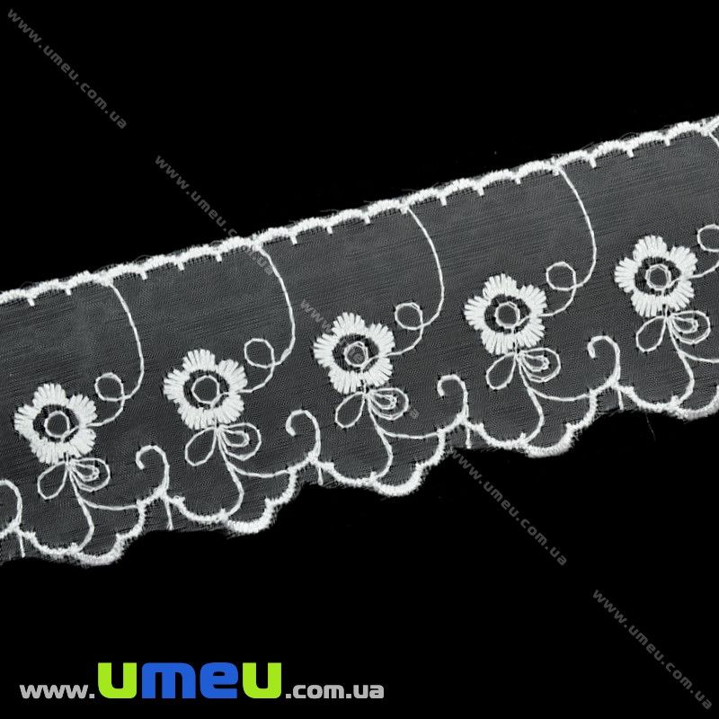 Кружево органза Цветы, 50 мм, Белое (LEN-015560) / 1 м
