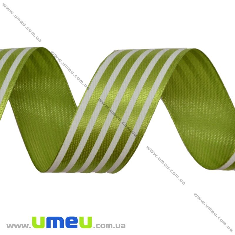 Атласная лента в полоску, 25 мм, Салатовая (LEN-016705) / 1 м