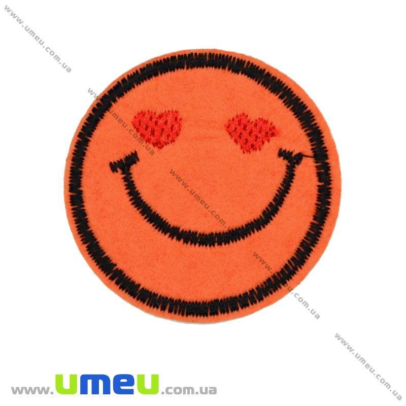 Термоаппликация Смайлик, 4,5 см, Оранжевая (APL-017469) / 1 шт
