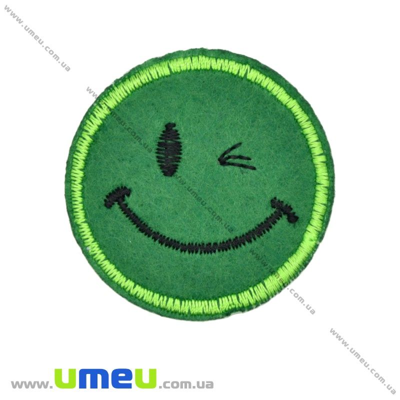 Термоаппликация Смайлик, 4,5 см, Зеленая (APL-017473) / 1 шт