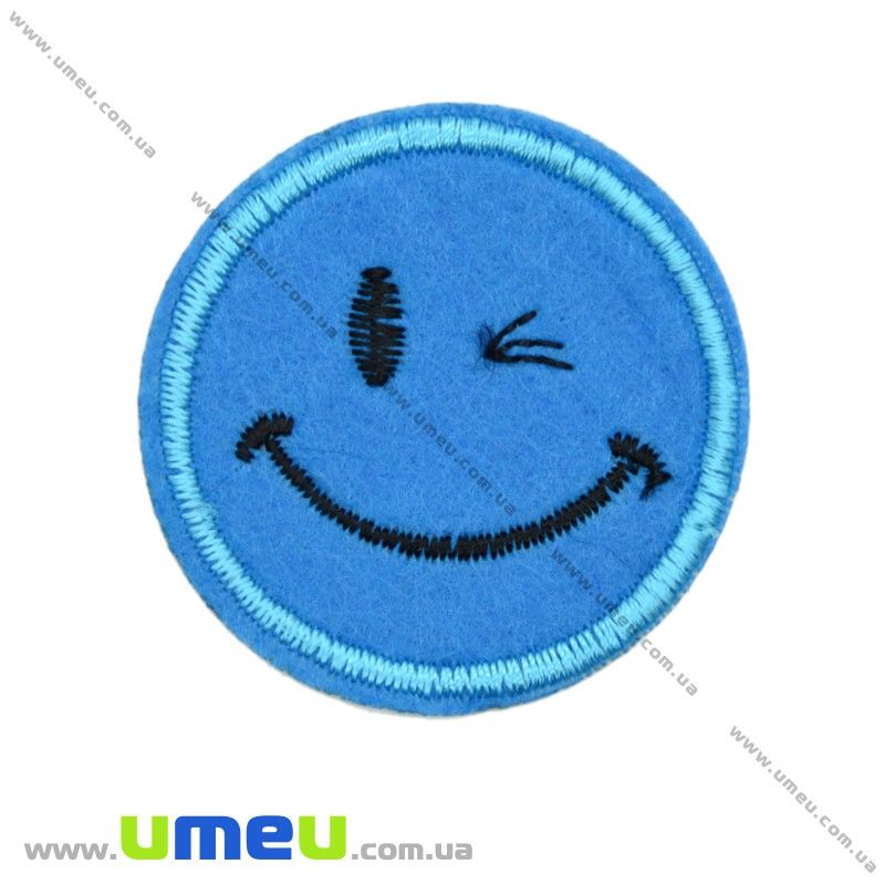 Термоаппликация Смайлик, 4,5 см, Синяя (APL-017476) / 1 шт