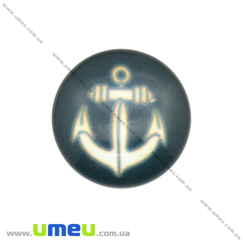 Кабошон стекл. с принтом Морской якорь, 16 мм, Круглый (KAB-017653) / 1 шт