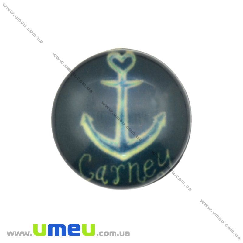 Кабошон стекл. с принтом Морской якорь, 16 мм, Круглый (KAB-017658) / 1 шт