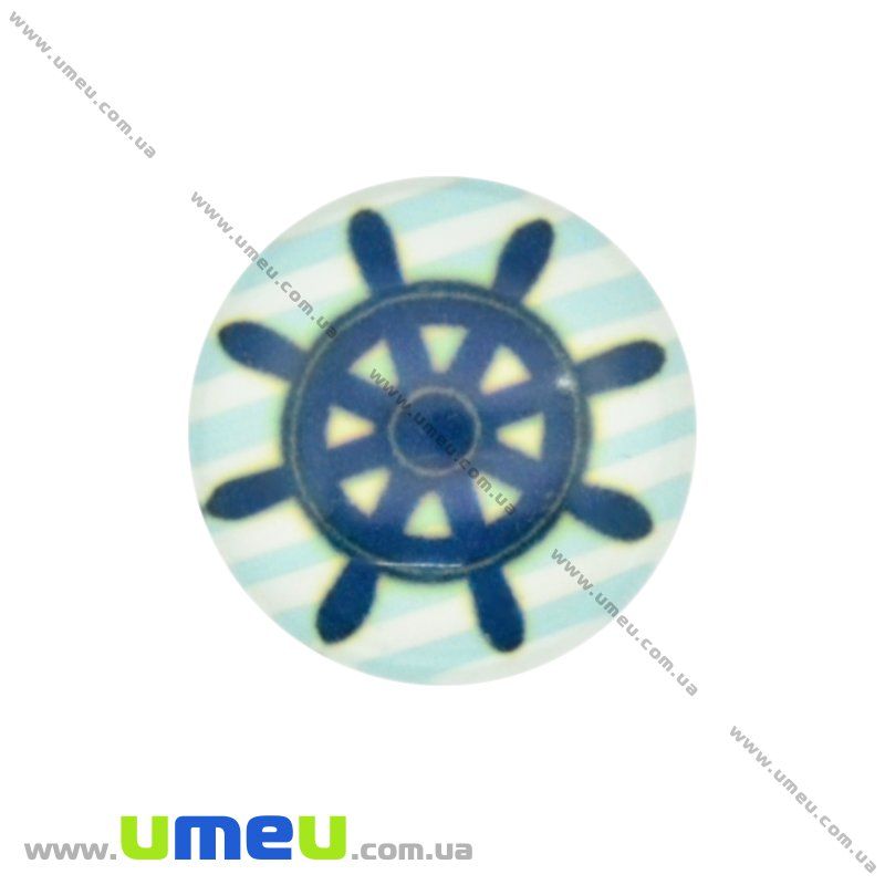 Кабошон стекл. с принтом Морской штурвал, 16 мм, Круглый (KAB-017661) /