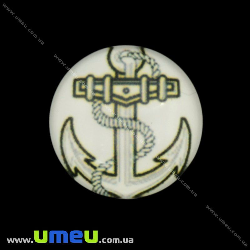 Кабошон стекл. с принтом Морской якорь, 16 мм, Круглый (KAB-017683) / 1 шт