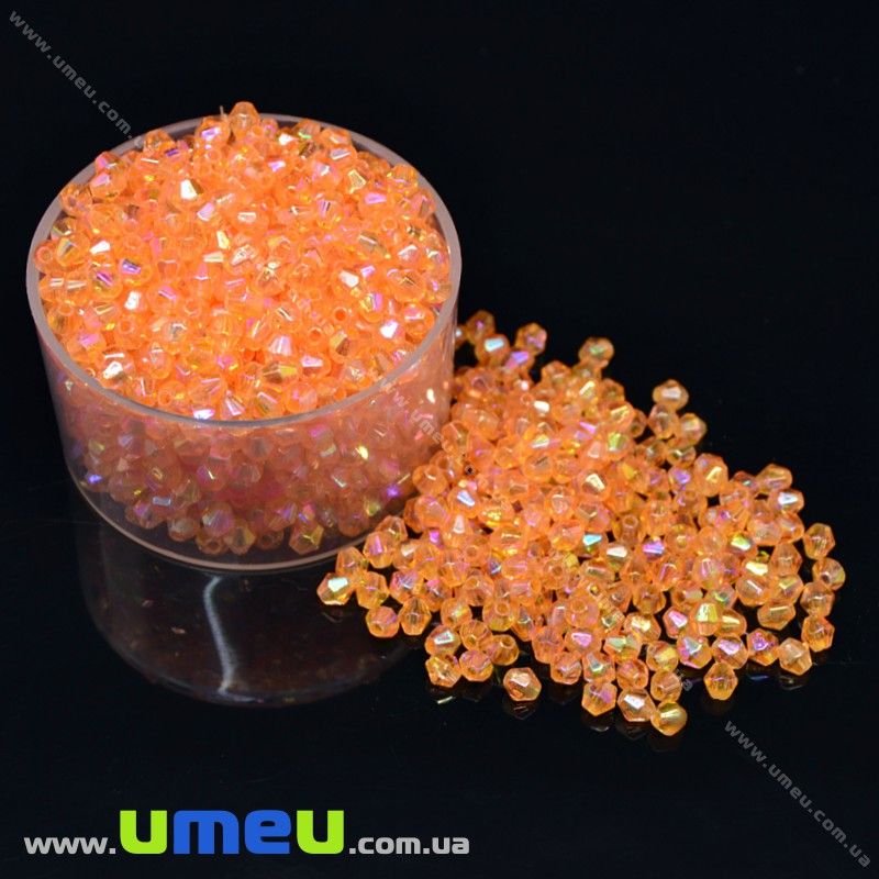 Бусины акриловые Биконусы, 4х4 мм, Оранжевые АВ (BUS-018048) / 1 уп (5 г)