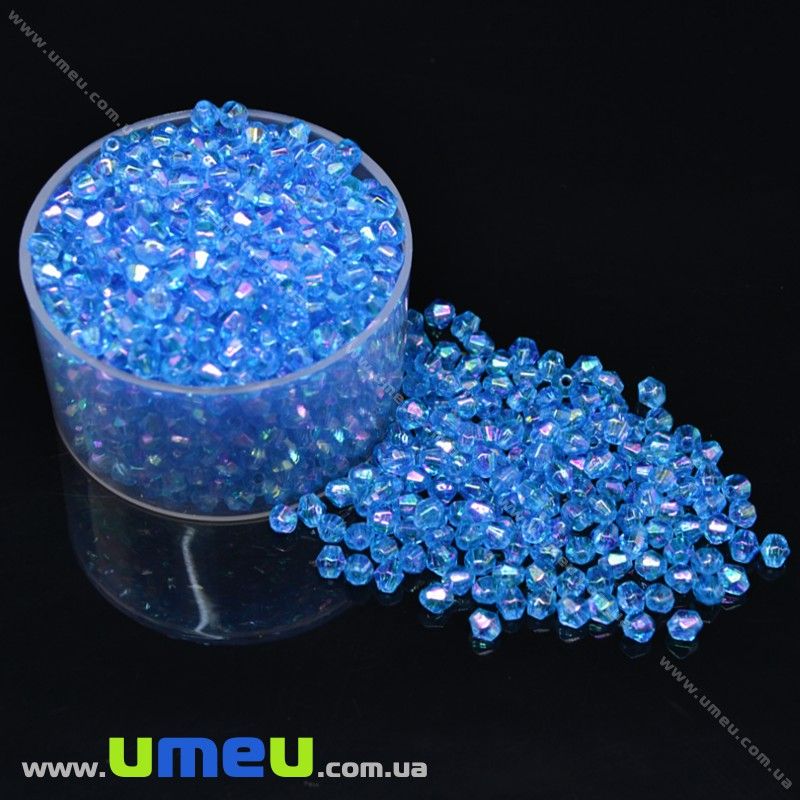 Бусина акриловая Биконус, 4х4 мм, Синяя АВ (BUS-018058) / 1 уп (5 г)