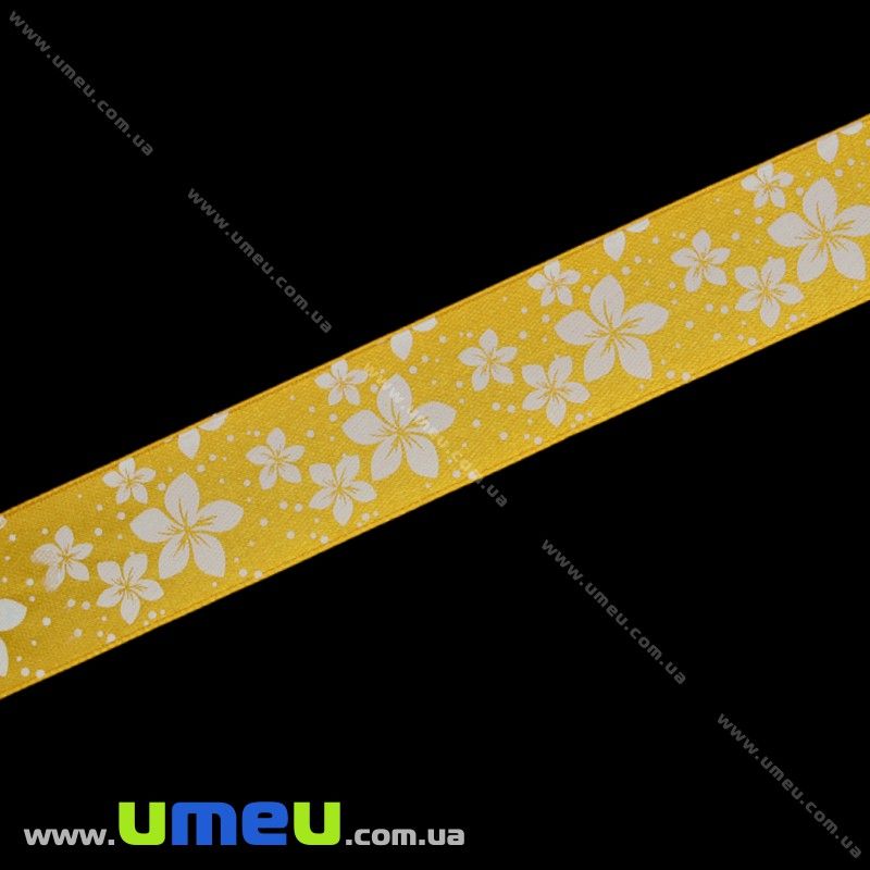 Атласная лента Цветы, 25 мм, Оранжевая (LEN-019660) / 1 м