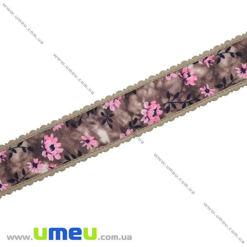 Тесьма гобеленовая с рюшами Цветы, 25 мм, Коричневая (LEN-019666) / 1 м