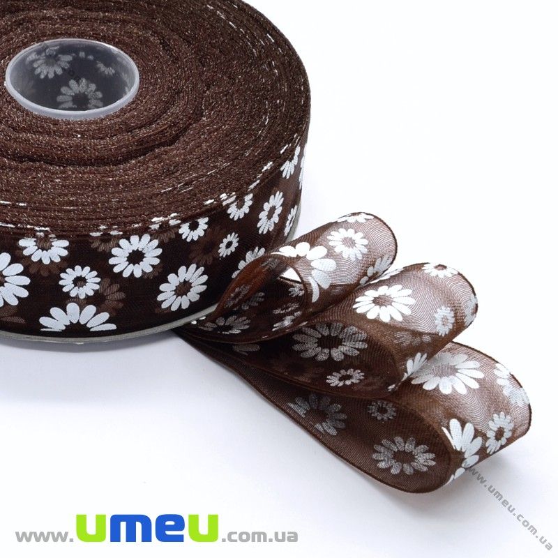 Лента из органзы Ромашки, 25 мм, Коричневая (LEN-019691) / 1 м