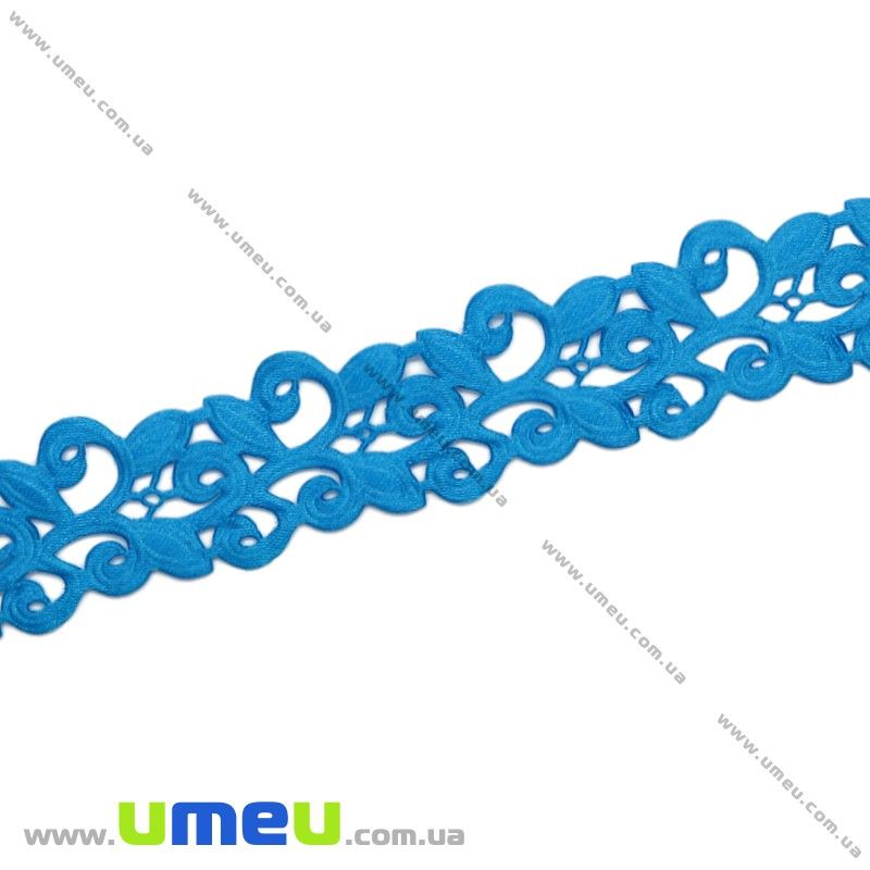 Тесьма тисненая Листики, 20 мм, Голубая яркая (LEN-019722) / 1 м
