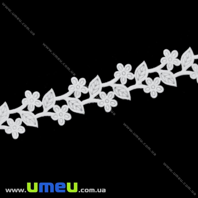 Тесьма тисненая Цветы с листиками, 20 мм, Белая (LEN-019723) / 1 м