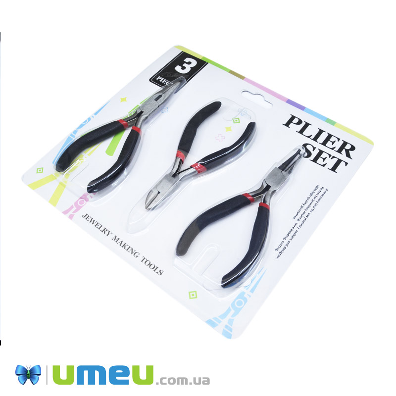 В набор входят: кусачки, круглогубцы, тонкогубцы.