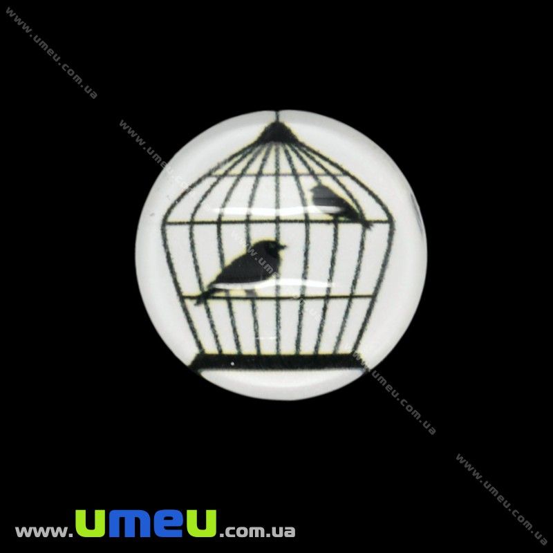 Кабошон стекл. с принтом Птички, 18 мм, Круглый (KAB-019945) / 1 шт