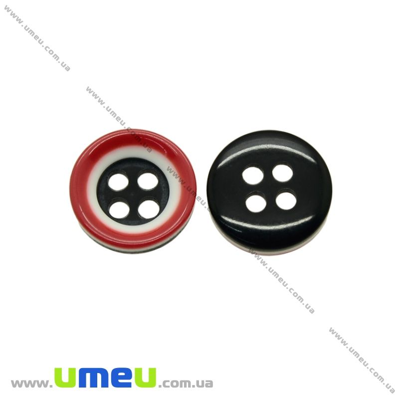 Пуговица пластиковая Круглая полосатая, 11,5 мм, Черно-красная (PUG-021414) / 1 шт
