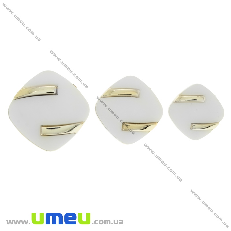 Пуговица пластиковая на ножке Матовая белая, 25х25 мм, Светлое золото (PUG-021461) / 1 шт